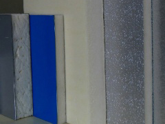 金属外墙保温板表层为彩涂铝板,铝板可根据设计要求选择饰面图案、颜色或辊轧制成规定纹路,主要起装饰作用 ,同时具有良好的耐候性、耐腐蚀性、自洁性等特点;中间层是聚氨酯硬质泡沫,具有优良的保温隔热性能。